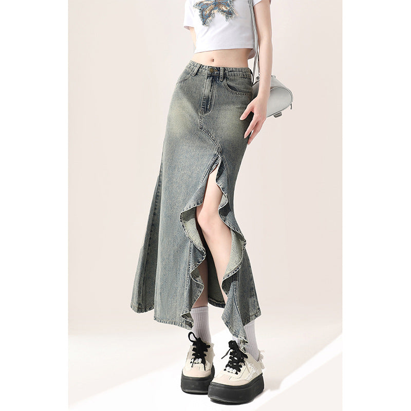 Irregular Half-length Denim Split Skirt